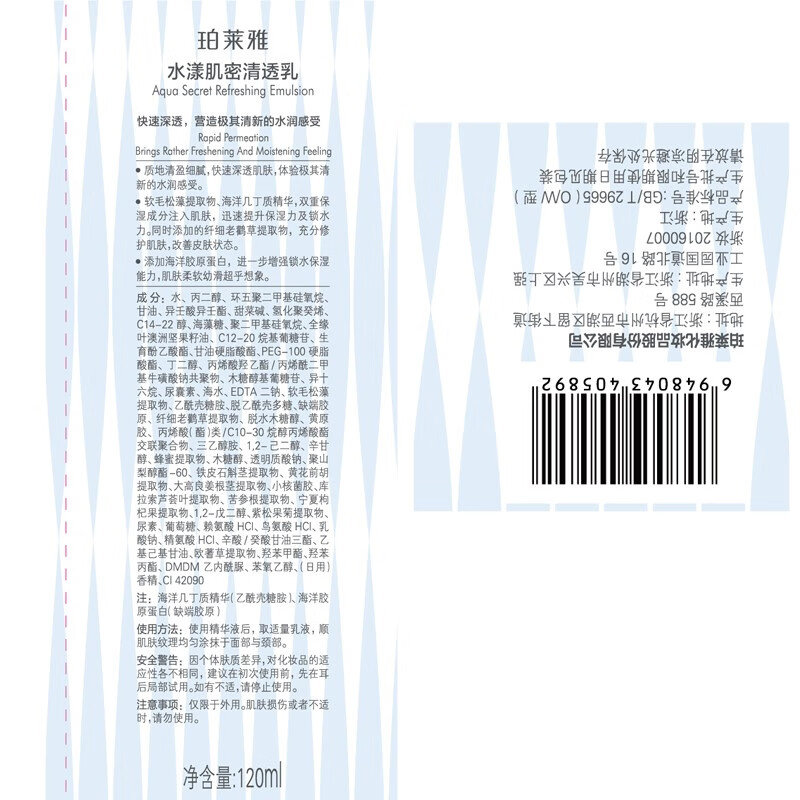 珀莱雅水漾肌密洁面膏120g,水150ml,乳120ml;